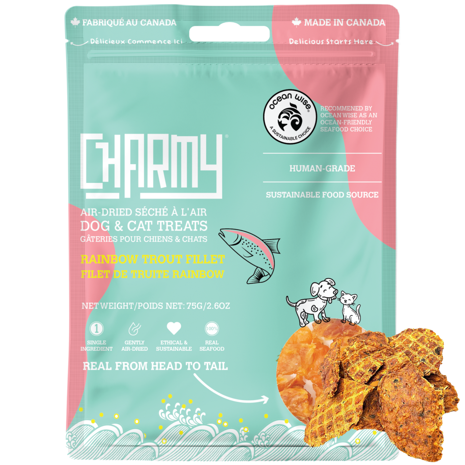 Charmy Pets | Nourriture lyophilisée au saumon et au canard | Boost au ginseng