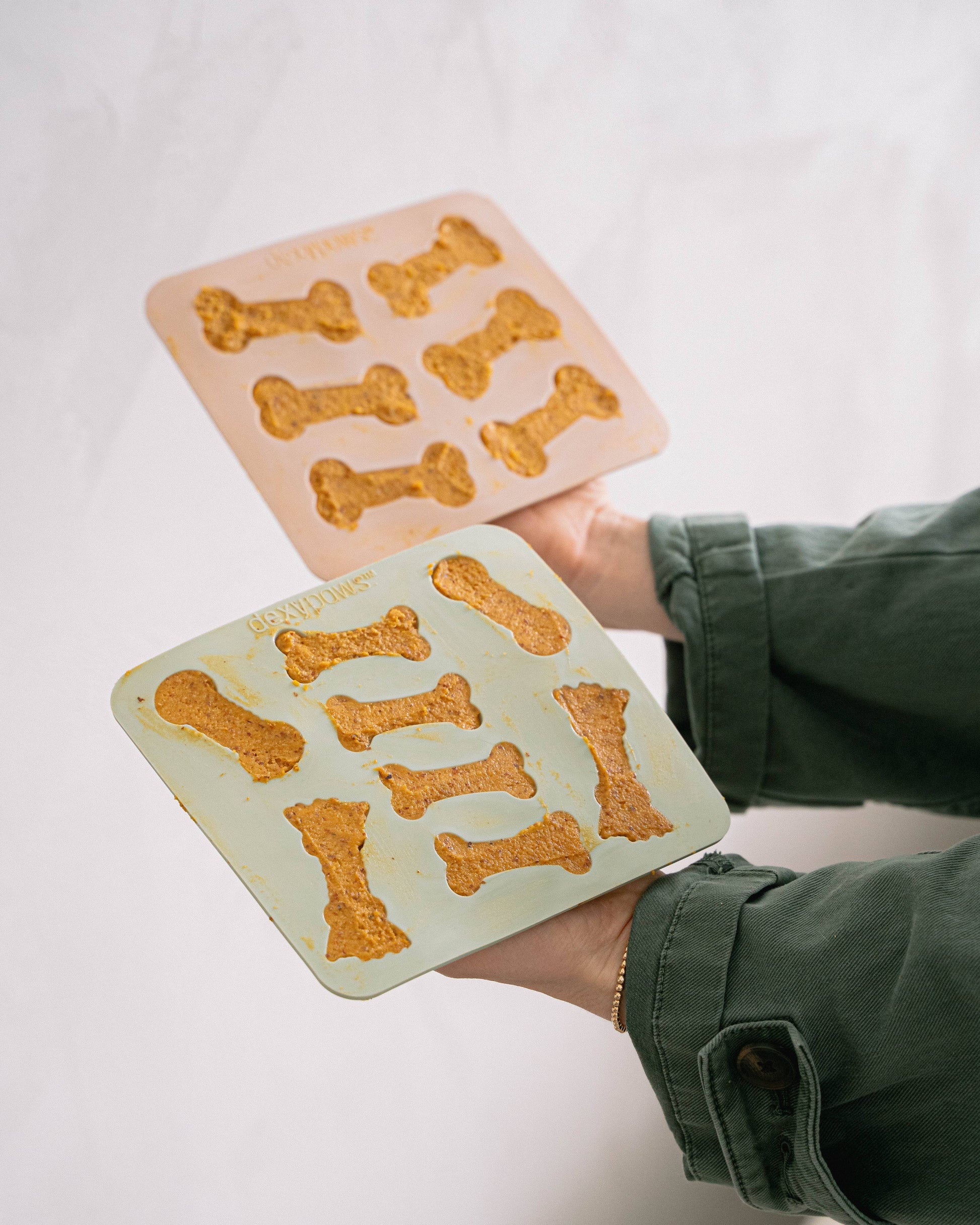 Fabriquées à partir de silicone de qualité alimentaire sans BPA, nos moules peuvent être lavés au lave-vaisselle puis vont au four et au congélateur. Offrez à votre ami à quatre pattes des collations délicieuses, saines et préparées avec amour!