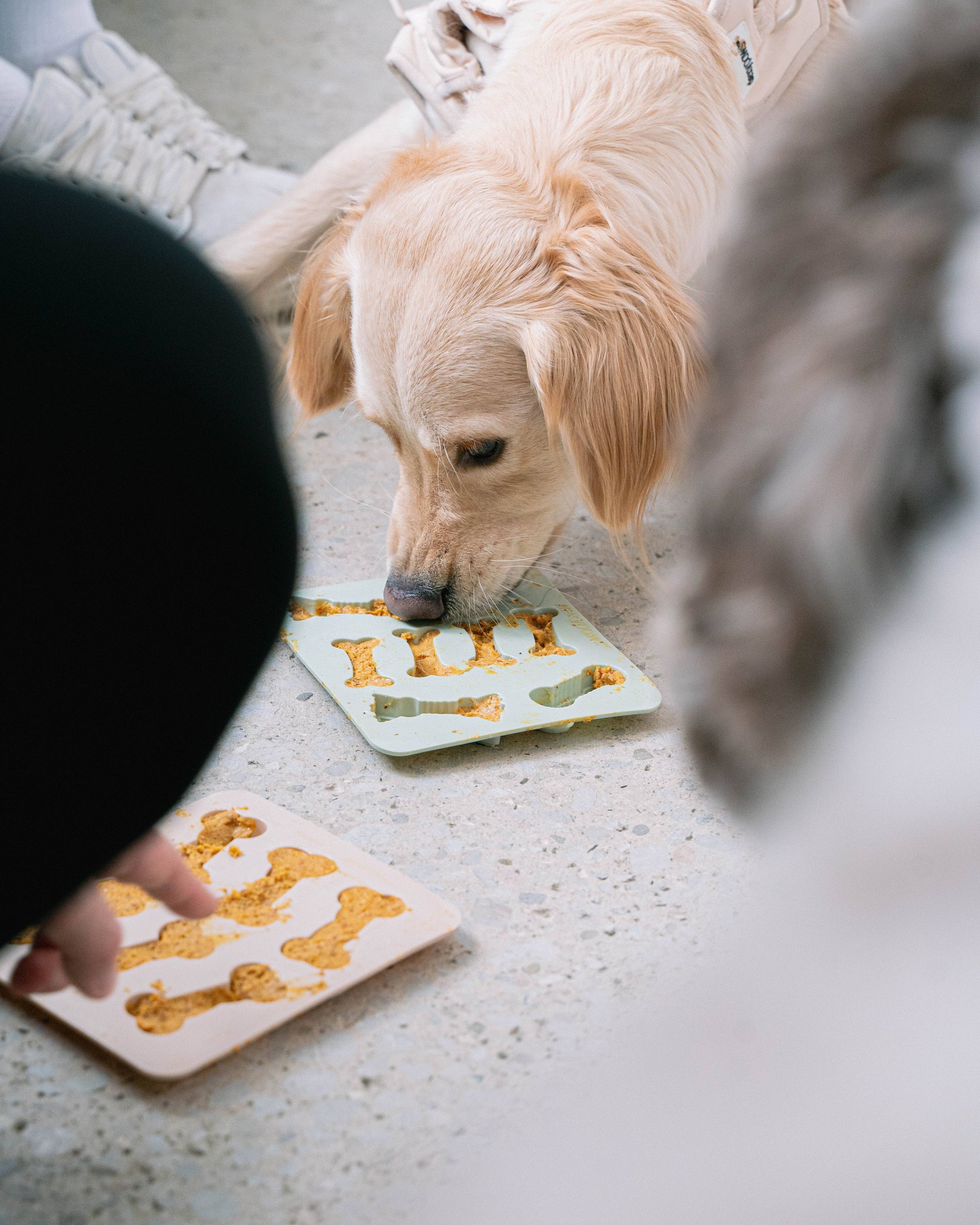 Préparez des friandises pour chiens faites maison avec notre ensemble de moules à friandises pour chiens ! Cet ensemble comprend deux moules flexibles en silicone antiadhésif et une spatule ergonomique, ce qui permet de mélanger, verser et sortir facilement les friandises.