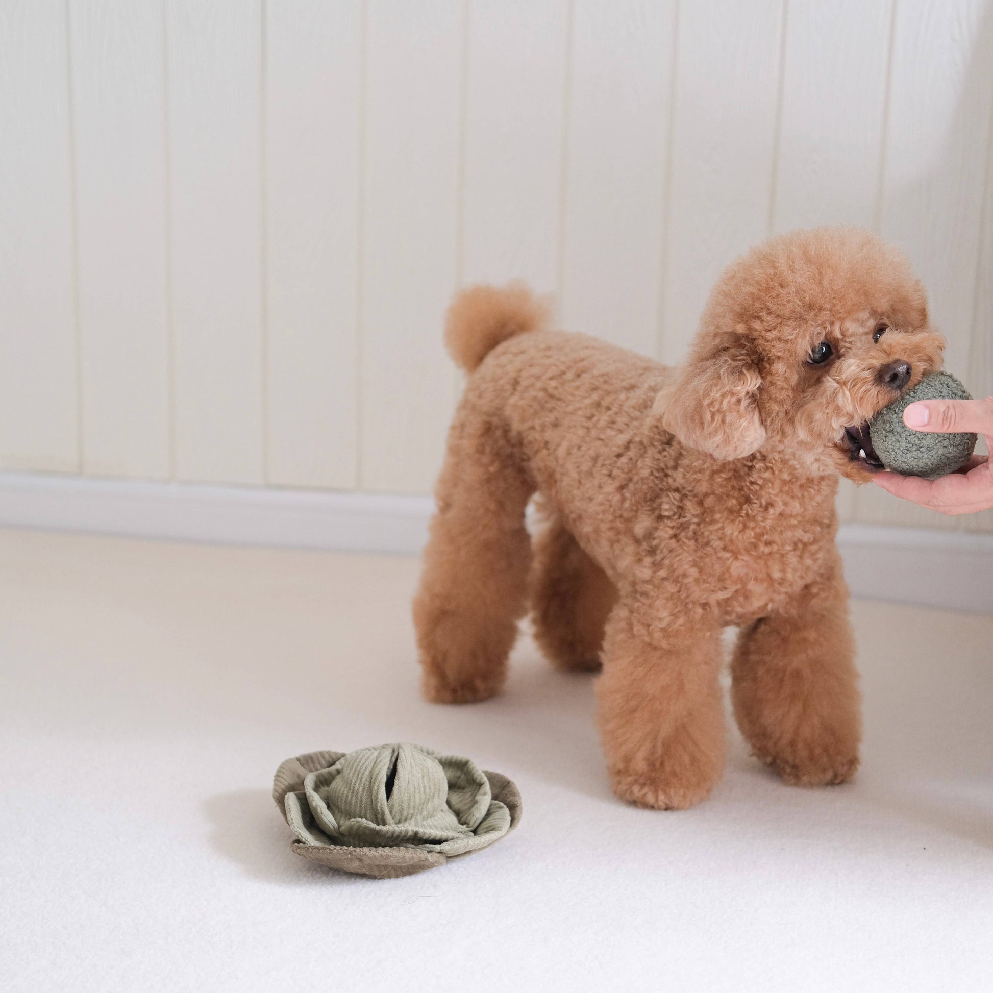 Ce chou combine tout le plaisir des balles, des cachettes et des jouets à câliner en un seul objet! Il se froisse à chacune de ses feuilles et vous permet de cacher des friandises entre elles. La balle couinante en TPR recouverte de peluche est non seulement durable, mais également douce pour la gueule de votre chien. Elle se cache au milieu du chou et elle est amovible, vous pourrez la lancer à votre chien pour un jeu plus actif.