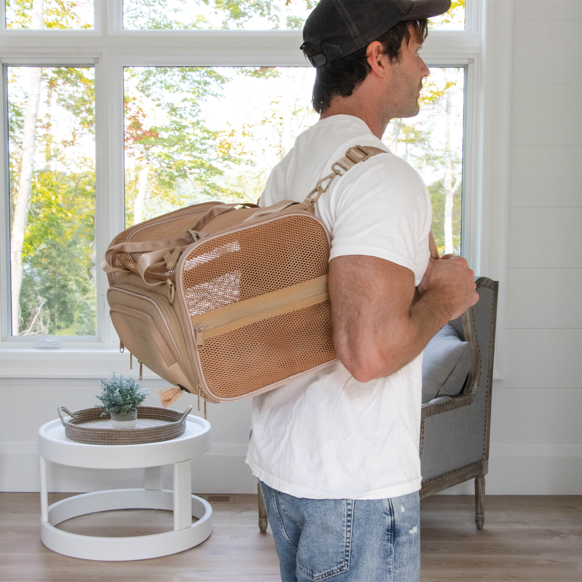Notre sac de transport pour animaux de compagnie est approuvée par les compagnies aériennes. Sa taille est parfaite pour votre petit chien ou votre chat. Avec ses parois en maille respirante, son lit amovible doublé de sherpa et une attache de sécurité, ce transporteur offre tout ce dont votre animal a besoin pour voyager confortablement. De plus, grâce aux sangles de sac à dos amovibles et à la fonction de passage pour valise, vous pouvez facilement transporter votre animal de compagnie sur votre dos ou sur votre valise tout en gardant les mains libres.